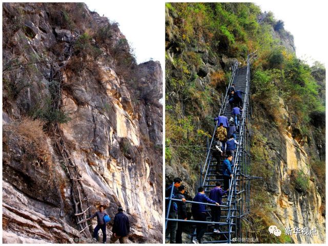 大涼山“懸崖村”“天梯”今昔對比(來源:新華視點微博)