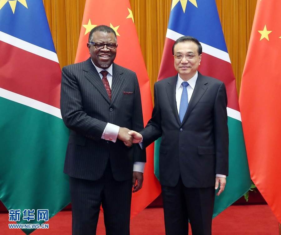 3月30日,國務院總理李克強在北京人民大會堂會見來華進行國事訪問的納米比亞總統根哥布。新華社記者 劉衛兵 攝