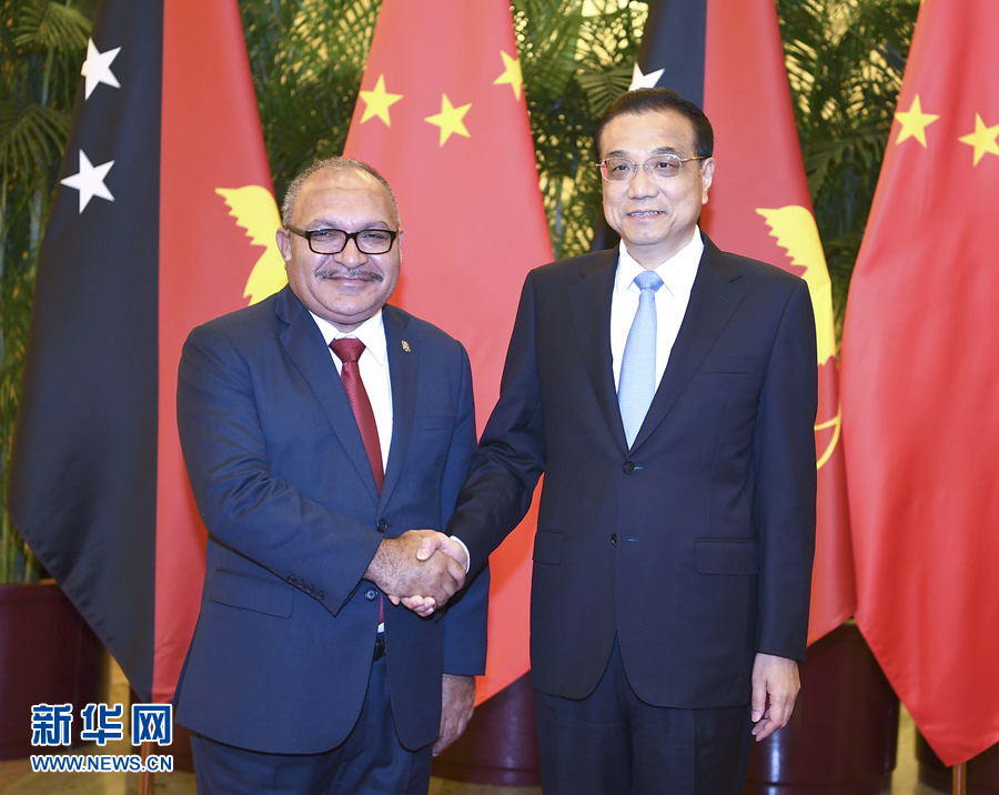 李克強表示,中國同巴新關系近年來穩步發展,成為中國同太平洋島國關系的典范。中方贊賞巴新堅定奉行一個中國政策,支持巴新自主選擇適合本國的發展道路,愿將“一帶一路”倡議同巴新的發展戰略更好對接,發揮互補優勢,在經貿投資、能源資源、基礎設施、工業產能等重點領域創造更多合作機遇,打造中巴新合作新的亮點。