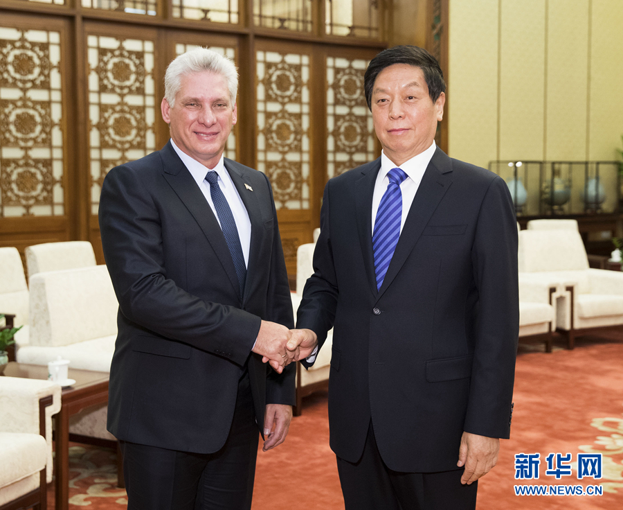 11月8日,全國人大常委會委員長栗戰書在北京人民大會堂會見古巴國務委員會主席兼部長會議主席迪亞斯-卡內爾。 新華社記者 黃敬文 攝