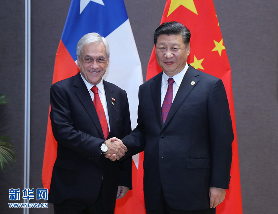 11月17日,國家主席習近平在莫爾茲比港會見智利總統皮涅拉。 新華社記者 白雪飛 攝