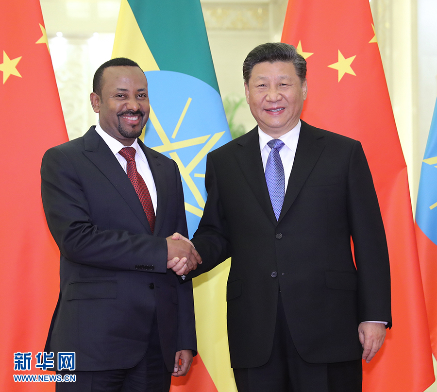 4月24日,國家主席習近平在北京人民大會堂會見埃塞俄比亞總理阿比。 新華社記者 丁林 攝