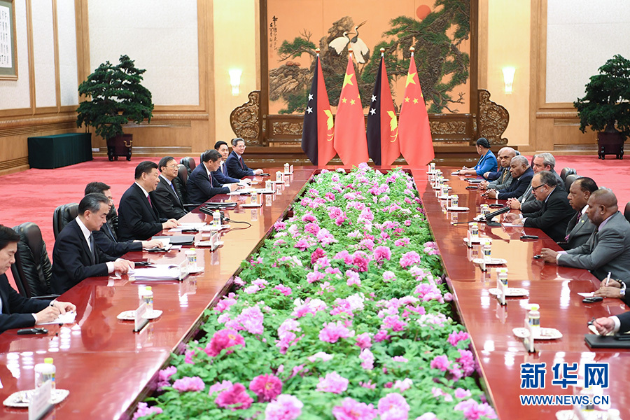 習近平指出,2018年11月,我成功對巴布亞新幾內亞進行國事訪問并同8個建交太平洋島國領導人舉行會晤。當前,中國同巴新關系處于歷史最好時期。中方高度贊賞巴新政府將發展對華關系作為外交優先方向,在涉及中國核心利益問題上給予中方堅定支持。中方支持巴新方自主選擇適合本國國情的發展道路,愿同巴新方增進互信,深化合作,厚植友誼,加強在多邊框架內協調和合作,推動兩國全面戰略伙伴關系得到更大發展。巴布亞新幾內亞在開展共建“一帶一路”合作方面走在太平洋島國前列,我們要進一步拓展合作,為在島國地區共建“一帶一路”作出示范和引領。