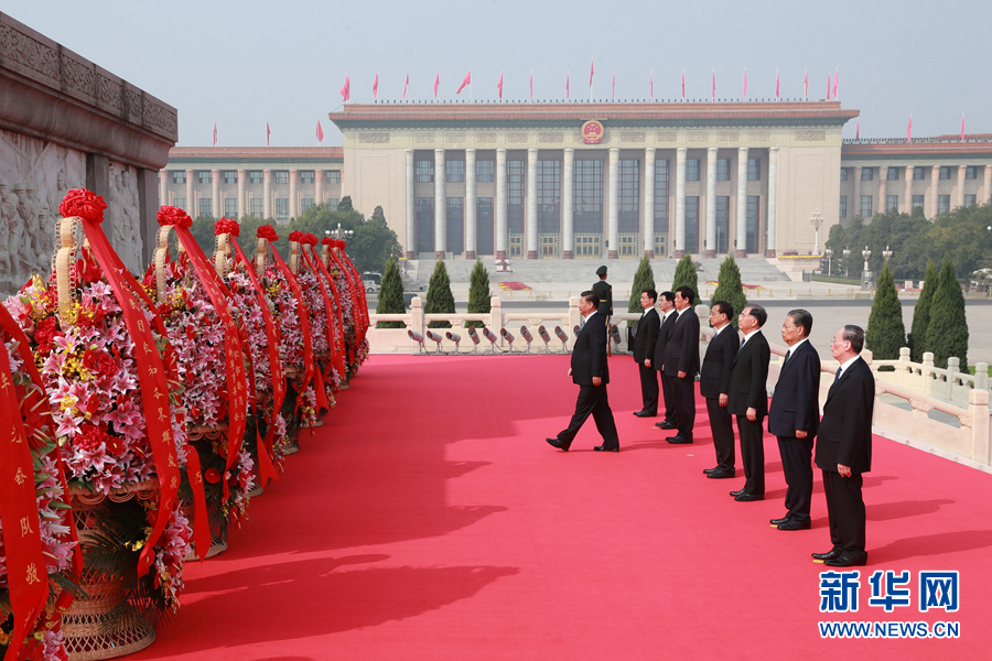 9月30日上午,習近平、李克強、栗戰書、汪洋、王滬寧、趙樂際、韓正、王岐山等黨和國家領導人來到北京天安門廣場,出席烈士紀念日向人民英雄敬獻花籃儀式。儀式前,習近平等來到毛主席紀念堂瞻仰毛澤東同志遺容。新華社記者 鞠鵬 攝