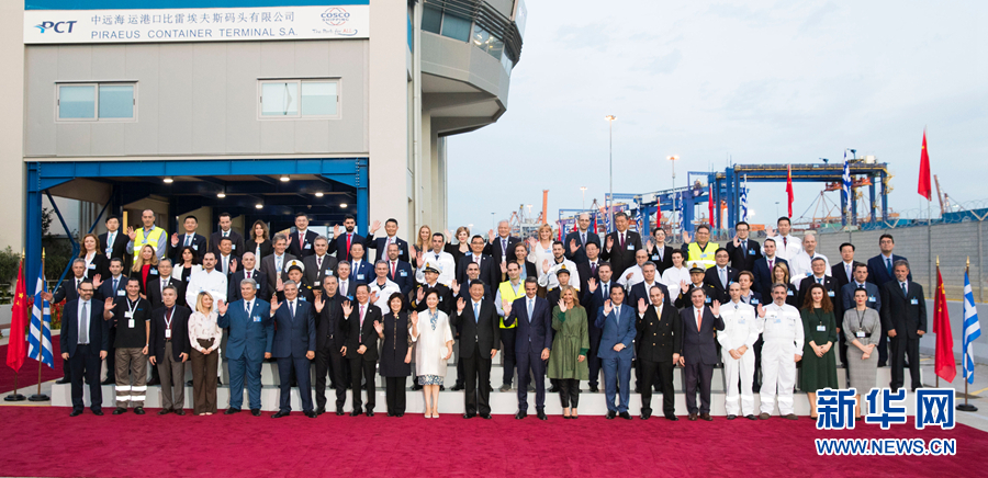 當地時間11月11日,國家主席習近平和夫人彭麗媛在希臘總理米佐塔基斯夫婦陪同下,共同參觀中遠海運比雷埃夫斯港項目。這是習近平夫婦和米佐塔基斯夫婦同中遠當地員工等合影。 新華社記者 黃敬文 攝