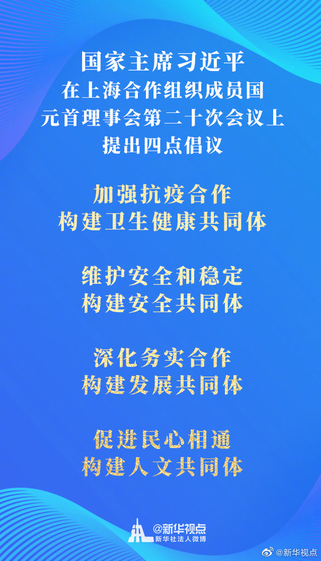 海報 | 習近平主席在上海合作組織成員國元首理事會第二十次會議上提出四點倡議