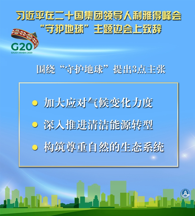 海報|習近平在二十國集團領導人利雅得峰會“守護地球”主題邊會上致辭