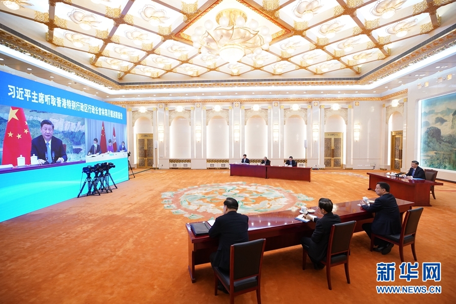 1月27日,國家主席習近平在北京以視頻連線方式聽取了香港特別行政區行政長官林鄭月娥2020年度的述職報告。新華社記者 王曄 攝