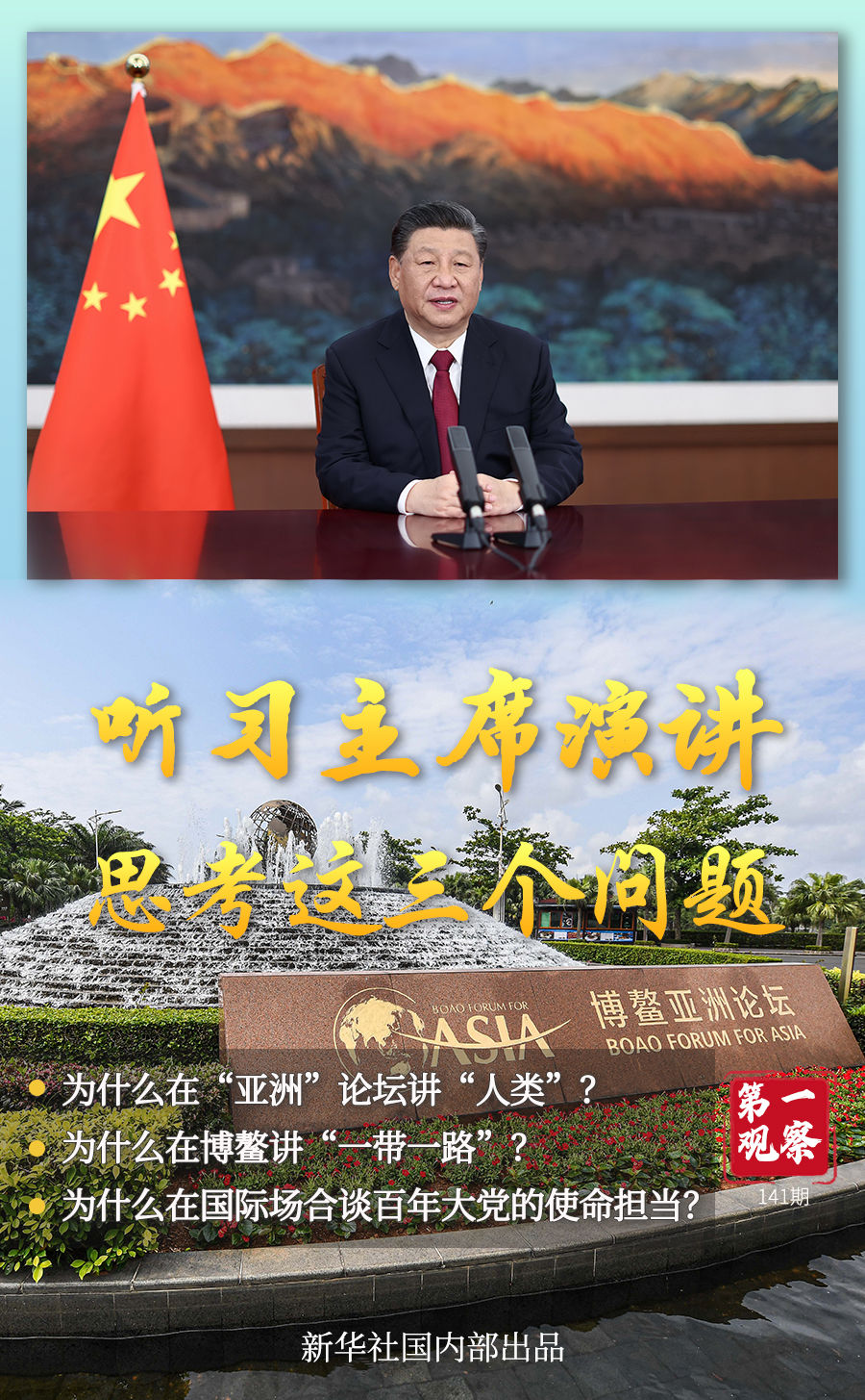 第三(san)個問題(ti),為(wei)何(he)在博鰲(ao)這個國際(ji)場(chang)合談(tan)百年大黨的使(shi)命擔(dan)當?