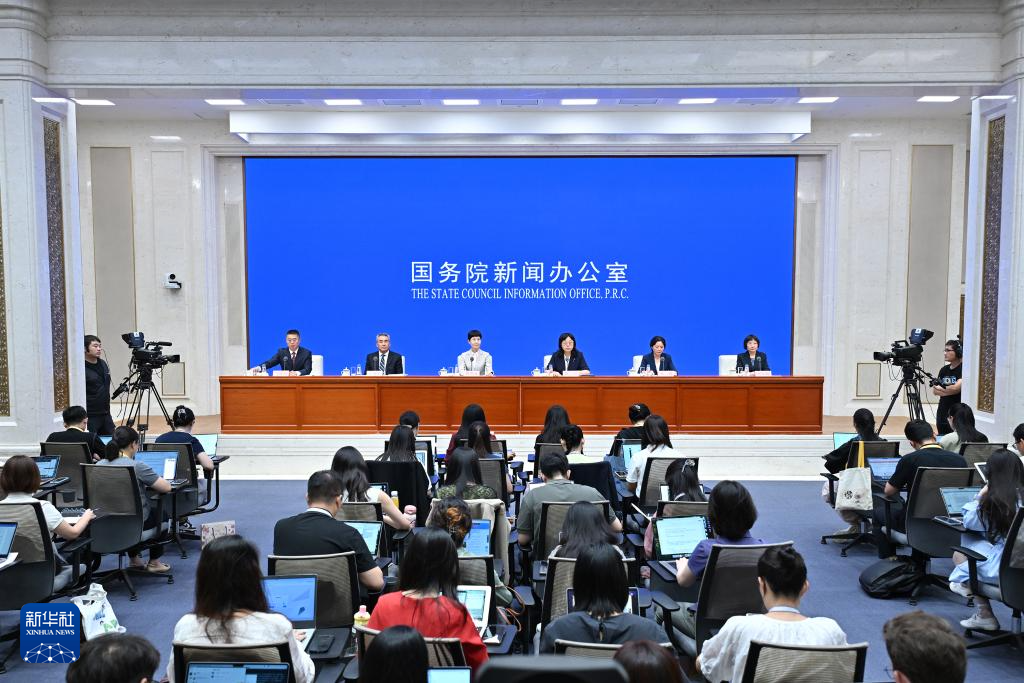 7月30日,國務院新聞辦公室在北京舉行新聞發布會,國家衛生健康委副主任郭燕紅和財政部社會保障司司長郭陽、國家衛生健康委人口家庭司司長王海東、國家醫保局待遇保障司負責人劉娟、全國總工會女職工部部長劉紅梅介紹育兒補貼制度及生育支持措施有關情況,并答記者問。新華社記者 李鑫 攝