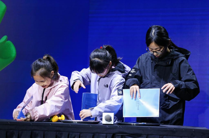 11月23日,小觀眾在浙江杭州舉辦的2024菠蘿科學獎現場進行科學實驗。新華社發