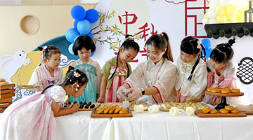 9月12日,在(zai)長(chang)興縣開發(fa)區(qu)中心幼兒園,孩子們(men)用彩泥制作創意(yi)“月餅”。