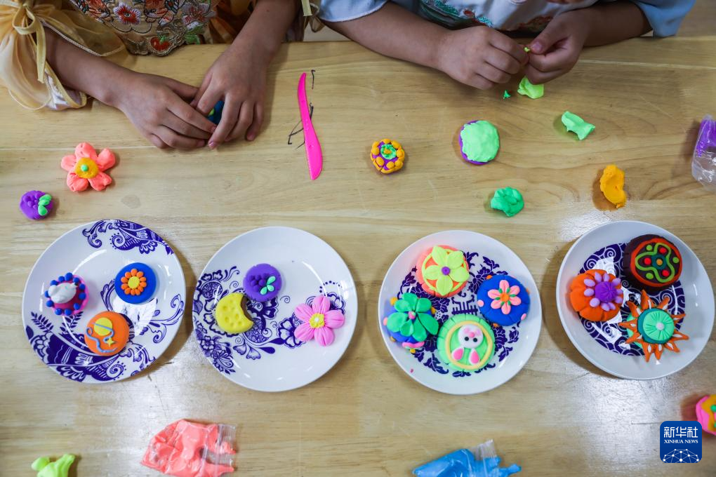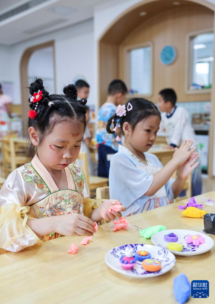9月12日(ri),在長興(xing)縣開發區中(zhong)心幼兒園,孩(hai)子們用(yong)彩泥制作創意“月餅(bing)”。