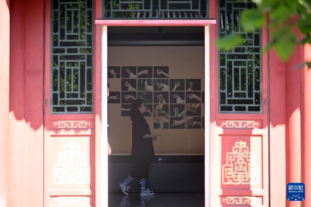 9月12日,觀(guan)眾(zhong)參觀(guan)梅派蘭(lan)花(hua)指攝影作品(pin)。