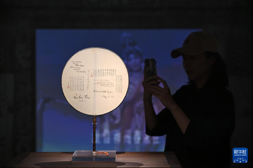 9月12日,觀(guan)眾拍攝印度(du)詩人泰戈爾(er)為(wei)梅蘭芳書寫的團扇。