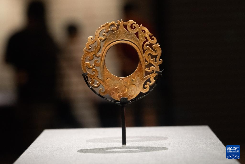 9月(yue)27日拍(pai)攝的展出的龍鳳(feng)虎紋韘(she)形玉佩。