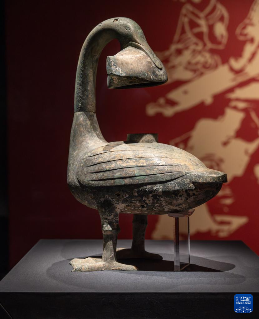 9月(yue)27日拍攝(she)的展出的雁(yan)魚形銅燈(deng)。