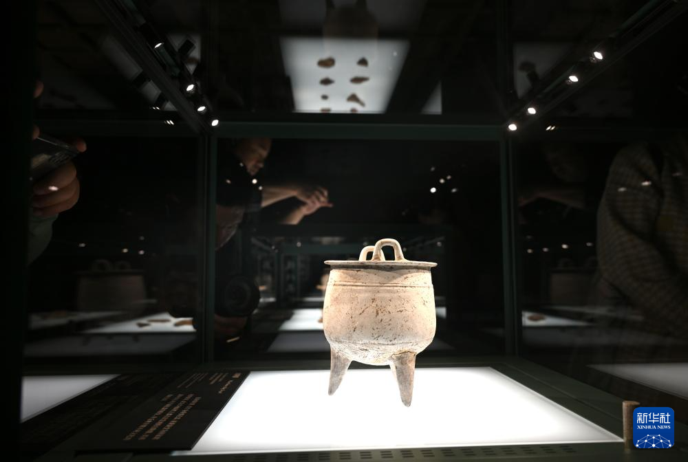 這是展出的商代白(bai)陶鼎(9月29日攝)。
