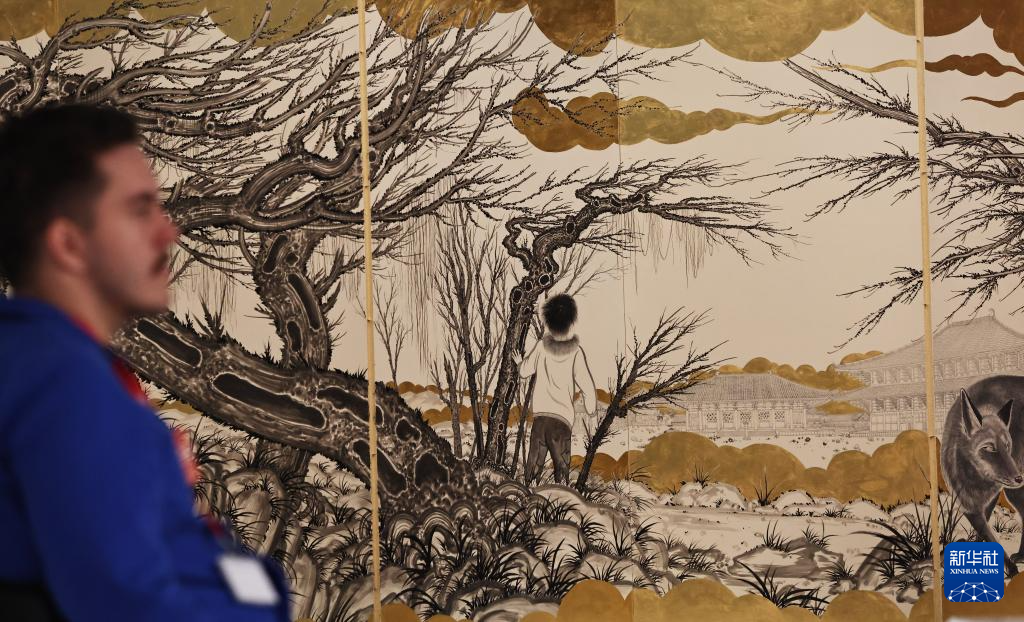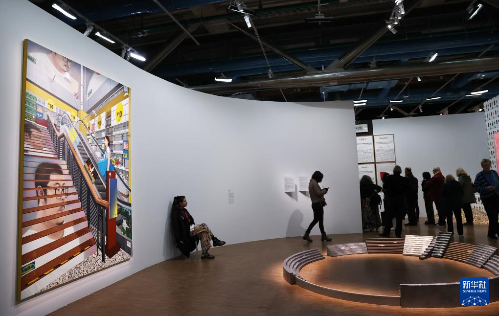10月8日,人們在(zai)法國巴黎蓬皮杜中心(xin)參觀中國當代藝術(shu)家群展《目(mu):中國境象》。
