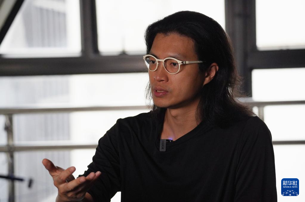 新媒體藝術家(jia)張瀚謙在接(jie)受記(ji)者采訪(9月24日攝)。新華社發(譚(tan)佳銘 攝)