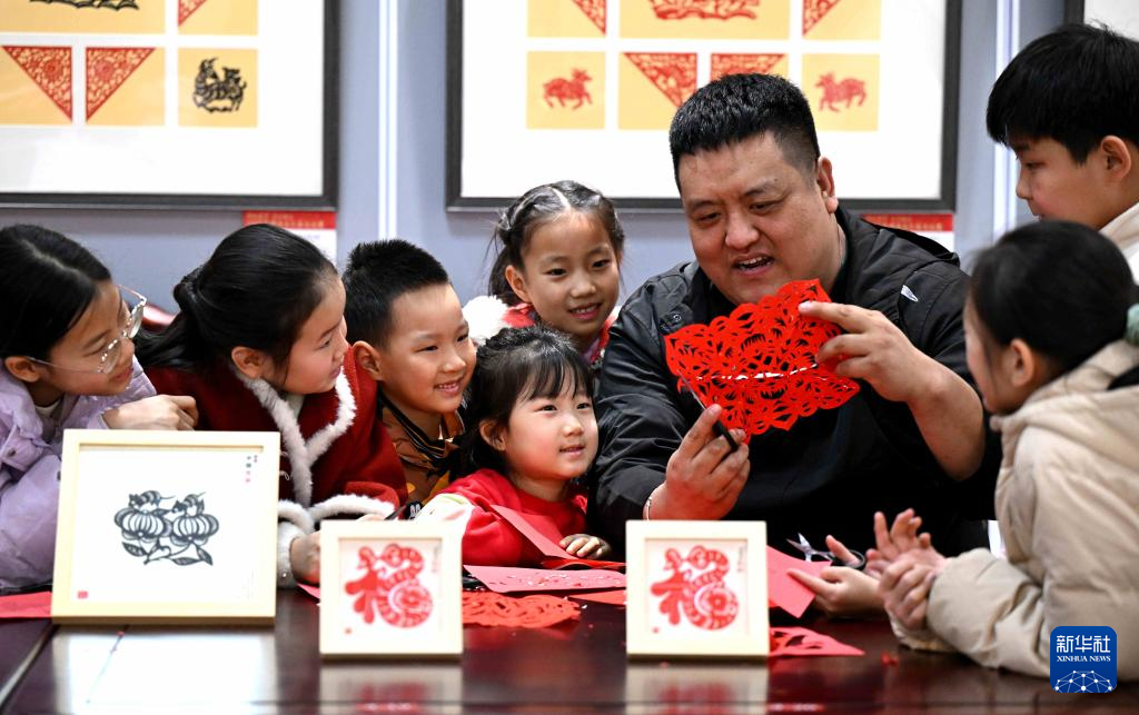 1月(yue)16日,小朋友在(zai)河北省群眾藝(yi)術館迎新(xin)春民俗文化展活(huo)動中體驗剪紙(zhi)技藝(yi)。