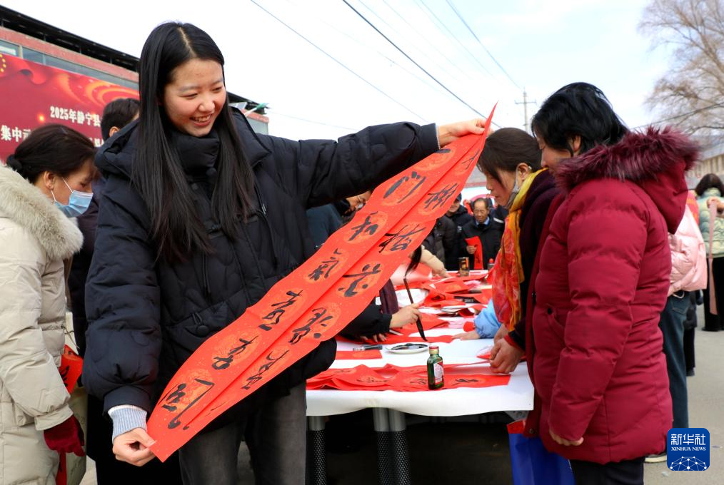 1月(yue)21日,在甘肅(su)省平涼市(shi)靜(jing)寧縣(xian)原安鎮(zhen)齊埂村舉行的靜(jing)寧縣(xian)文(wen)化科(ke)技衛生“三下(xia)鄉”集(ji)中(zhong)示范(fan)活動現場,村民喜領志(zhi)愿者(zhe)書寫的春聯。