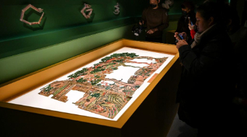 1月21日,參觀者在“萬古(gu)長(chang)歌——湖(hu)南史前文(wen)明圖(tu)卷展”上觀看圖(tu)卷。