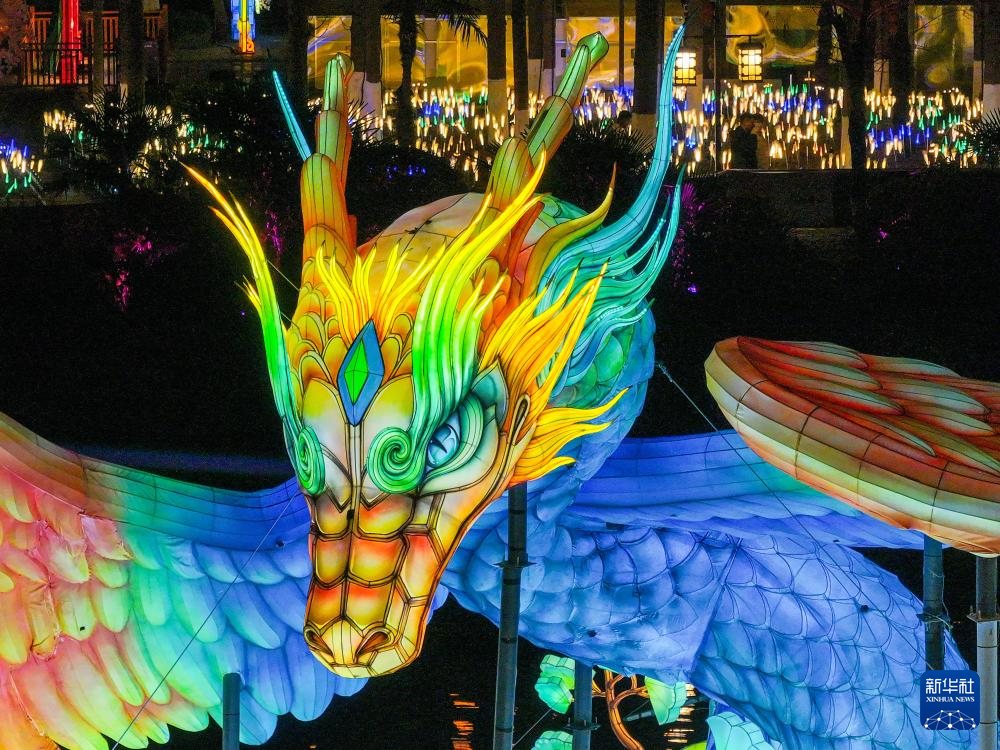 這是1月(yue)21日(ri)在江蘇南京白鷺(lu)洲(zhou)公園展區拍(pai)攝的燈組。