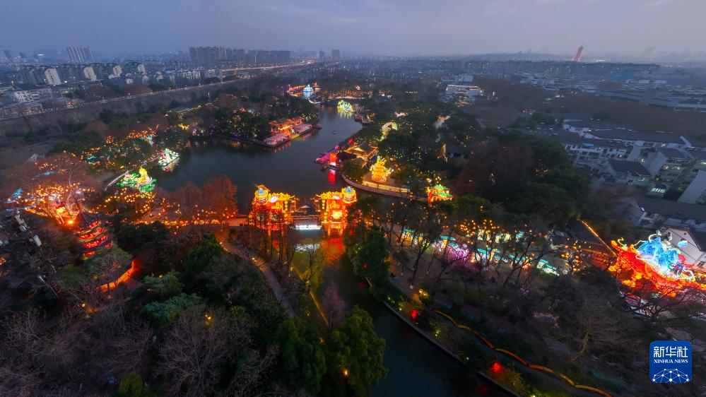 這(zhe)是1月(yue)21日在江蘇南京白(bai)鷺洲公園展區拍攝的燈組(zu)(無(wu)人機照片)。
