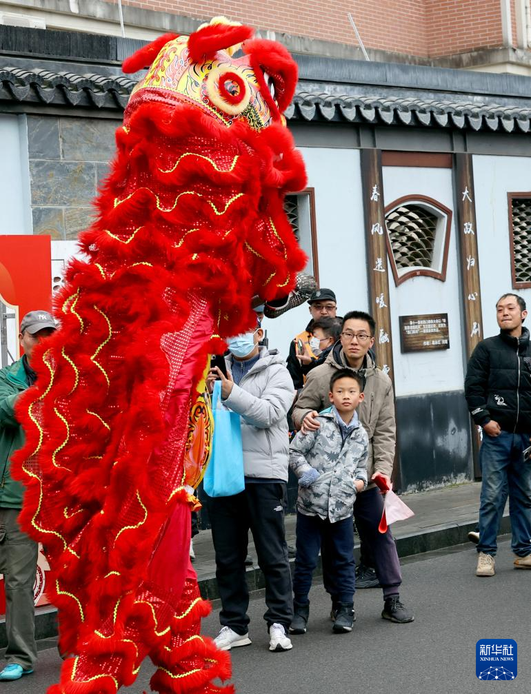 1月(yue)23日,傳(chuan)統舞獅表演吸引市(shi)民游(you)客(ke)拍照互動。