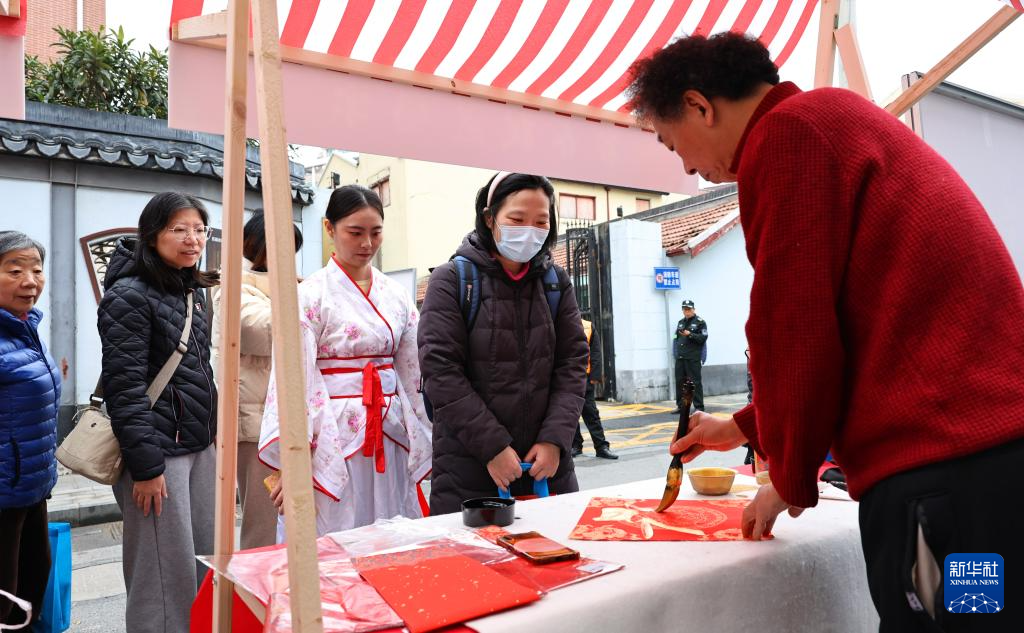 當(dang)日,“幸福萬家”第二十屆老西門春聯大會在(zai)(zai)上海黃(huang)浦區老西門街道舉行(xing)。市民游客不僅可(ke)以(yi)在(zai)(zai)現場領取書法(fa)家和(he)社(she)區書法(fa)愛好者們手(shou)書的春聯福字,還能在(zai)(zai)非(fei)遺展示攤(tan)位前體驗(yan)傳統手(shou)工藝,蛇年春節(jie)味道漸濃。
