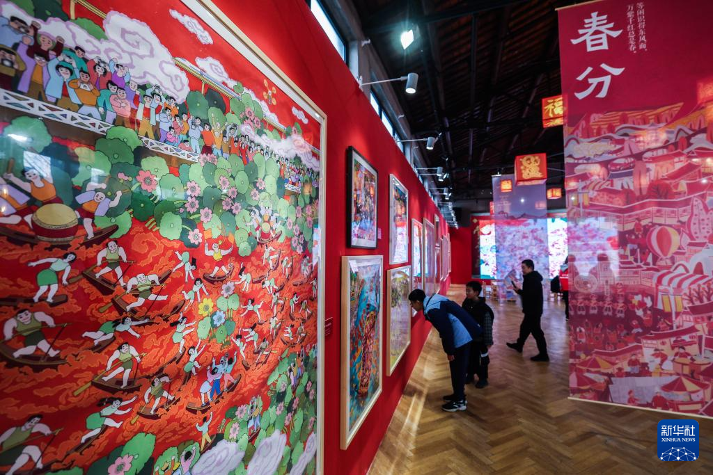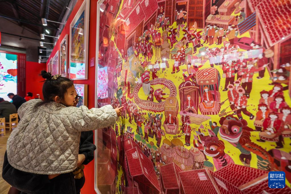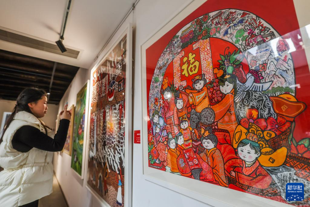1月23日,游客在湖州吳興的小西街西岸美術館觀賞(shang)年畫美術作(zuo)品。