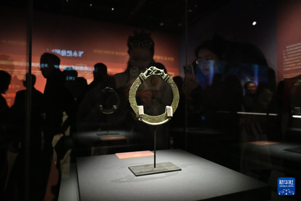 1月25日,觀眾在展覽現場(chang)拍攝文物授權環(huan)。