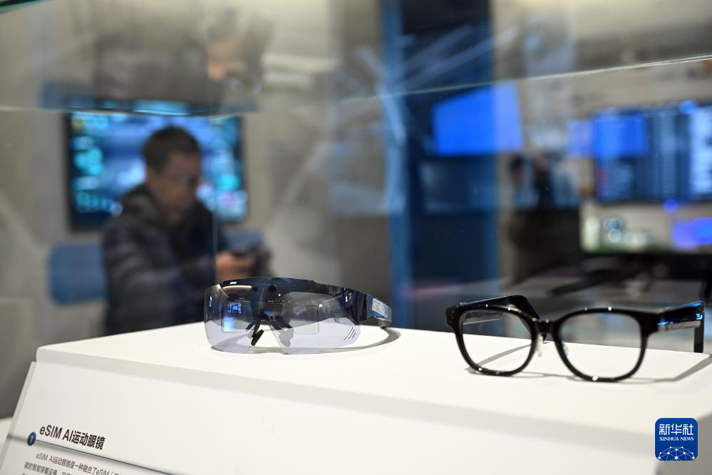 這(zhe)是(shi)2月20日(ri)在網絡發(fa)展新圖景成就(jiu)展上拍攝(she)的AI運動眼鏡(jing)。