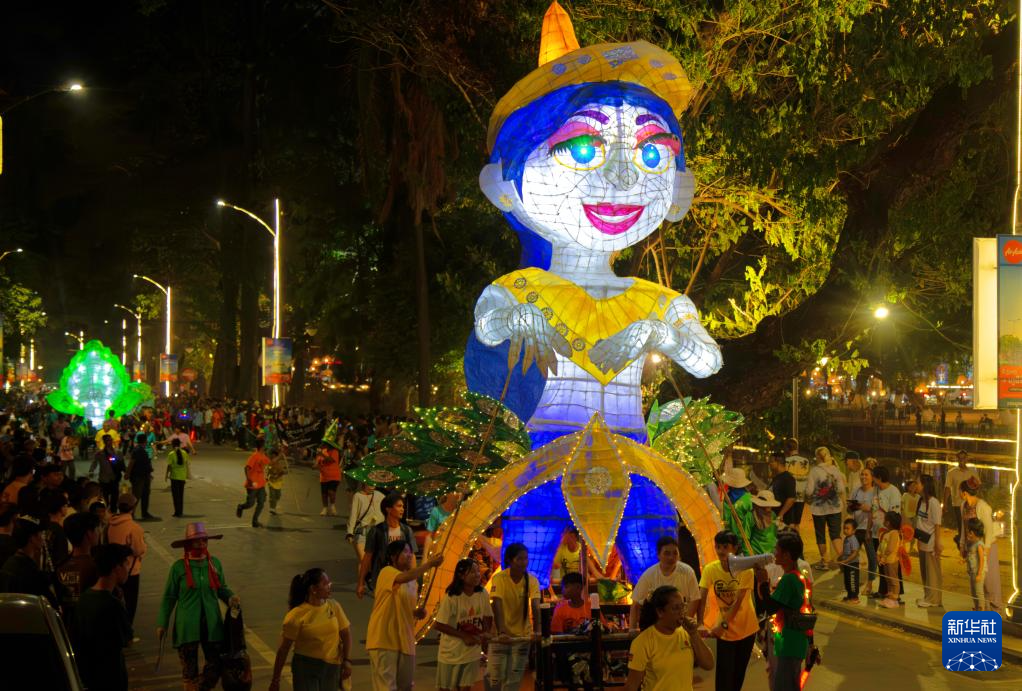 22日晚,一年(nian)一度的巨型(xing)彩燈裝置游(you)行(xing)在柬埔寨西北部暹粒市舉行(xing),吸(xi)引大(da)量(liang)游(you)客(ke)前來觀賞。