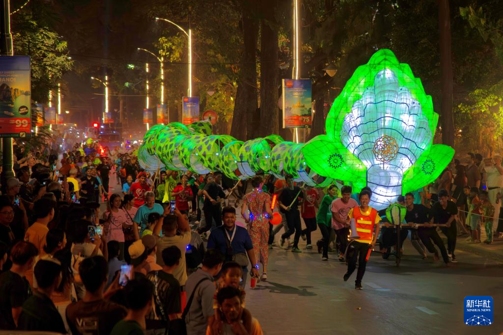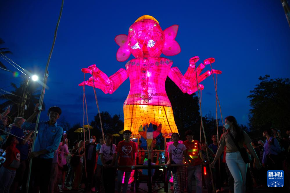 22日晚(wan),一年一度的巨(ju)型彩燈(deng)裝置游(you)行(xing)在柬埔(pu)寨西(xi)北部暹粒市舉(ju)行(xing),吸(xi)引(yin)大量游(you)客(ke)前來觀賞(shang)。