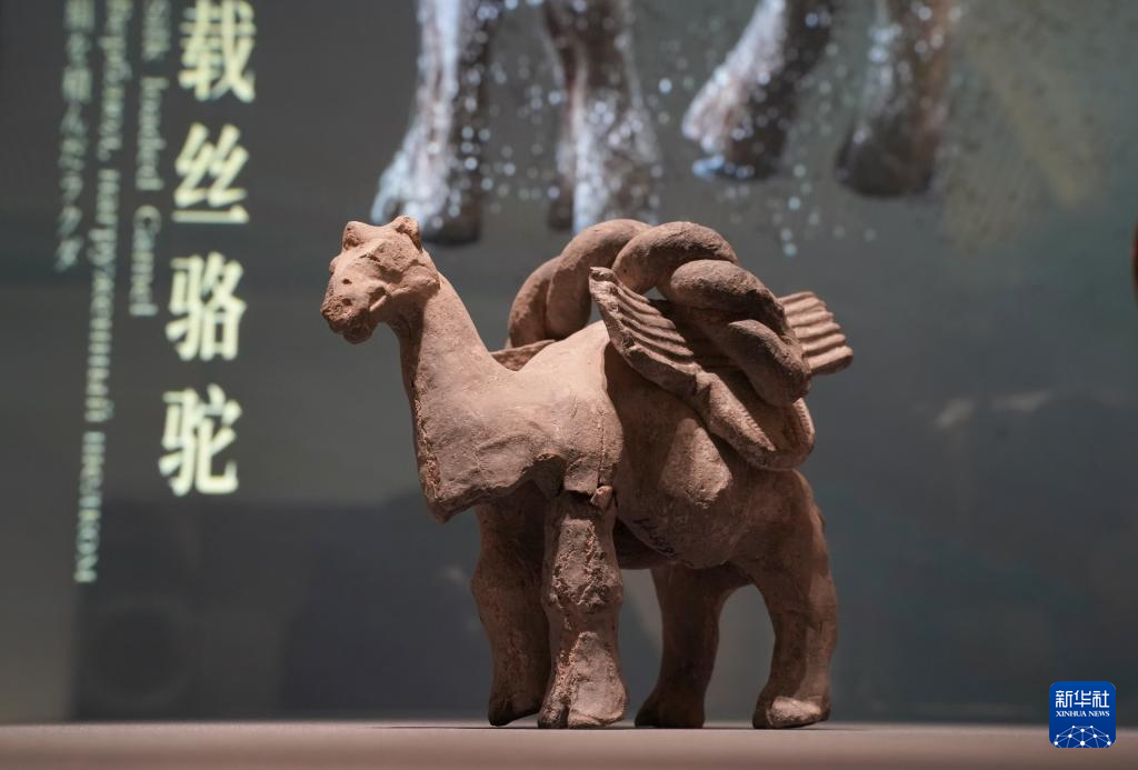 西(xi)部機場博物(wu)館展出的(de)北周文物(wu)彩繪(hui)陶載絲駱駝(tuo)(2月26日攝(she))。