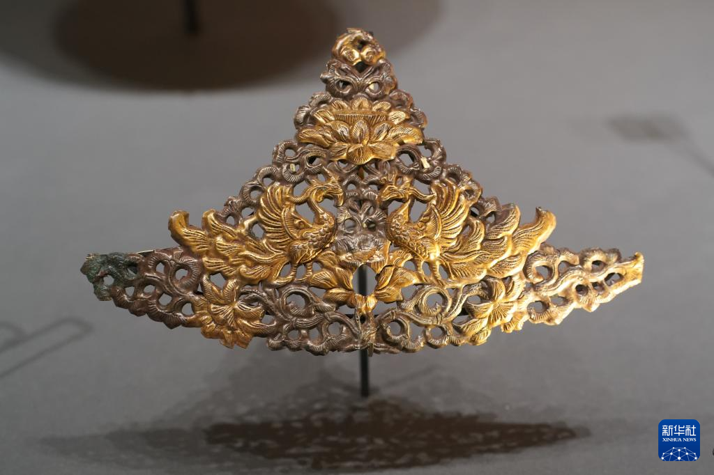 西(xi)部機場博物(wu)(wu)館展出的唐(tang)代文(wen)物(wu)(wu)鎏金銀釵(2月(yue)26日攝)。