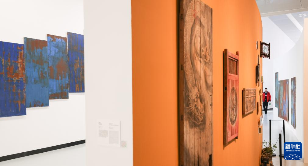 2月27日,一(yi)名(ming)參觀者在舟山美術館內拍(pai)攝。