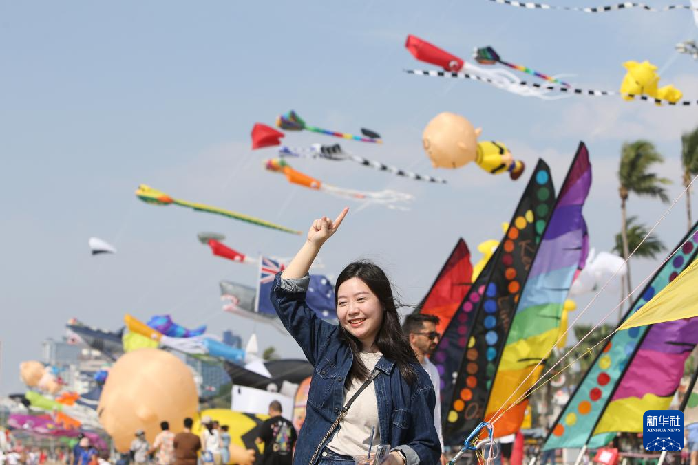 2月26日,一名(ming)女子在泰國芭堤雅(ya)海灘風箏節上留(liu)影(ying)。
