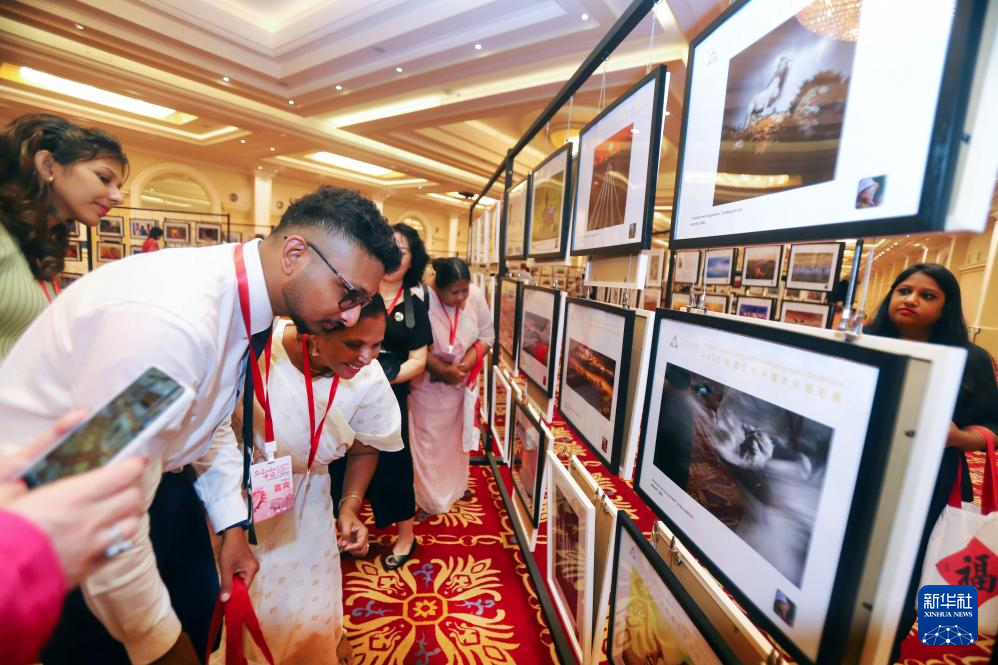 6月6日,在斯里蘭卡科倫坡,參(can)觀者在總理府(fu)欣賞2025斯里蘭卡-中國文化攝影展。