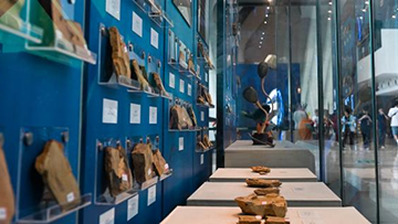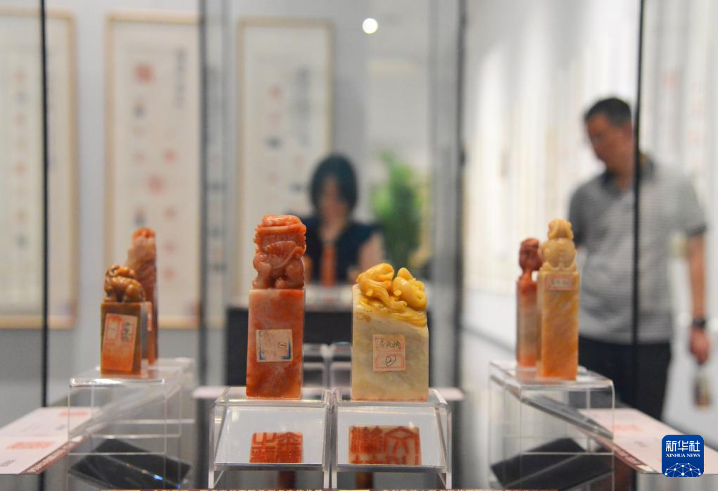 6月21日,觀眾在北京市海淀區三山五園文化藝術中心參觀薪傳國粹——“萬印樓”新藏當代國際篆刻精品展。
