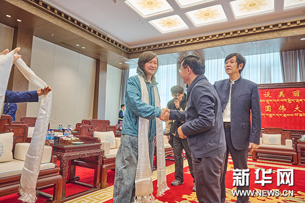 西藏自治區黨委宣傳部副部長、文化和旅游廳黨組書記肖傳江向藝術家們敬獻哈達
