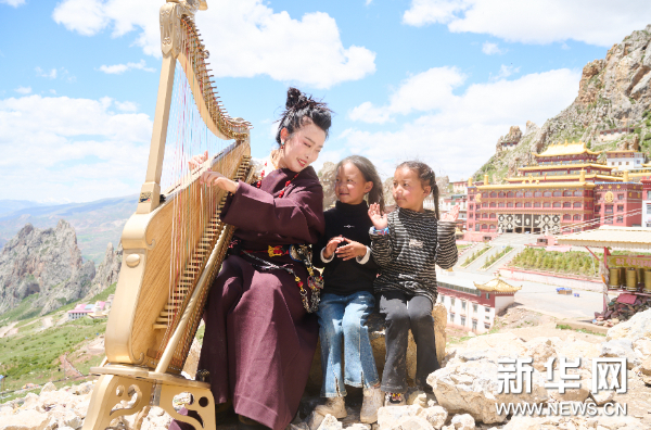 中央民族樂團著名箜篌演奏家吳琳為藏族小朋友演奏箜篌