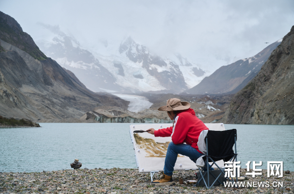 6月17日,“文化西藏 天上畫卷”高原高峰藝術家西藏行寫生活動走進廓瓊崗日冰川。