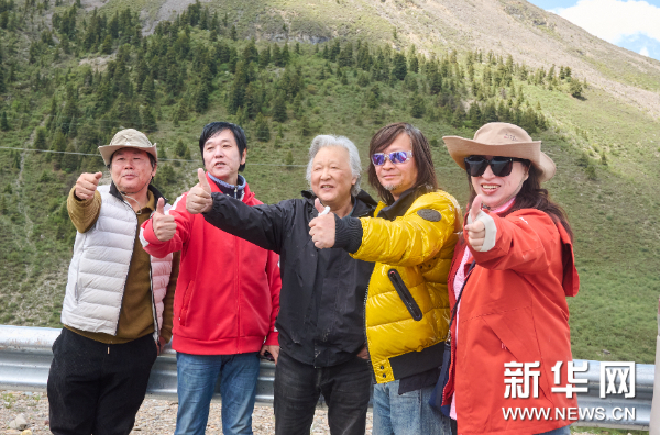 6月18日,“文化西藏 天上畫卷”高原高峰藝術家西藏行寫生活動藝術家在前往邊壩縣途中。