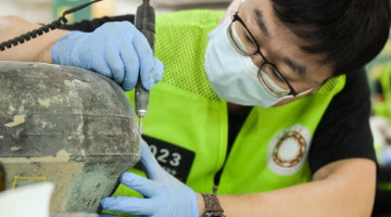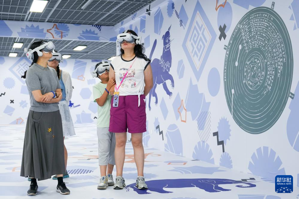7月10日,觀眾在南京博物院觀看展覽的球形視頻介紹。