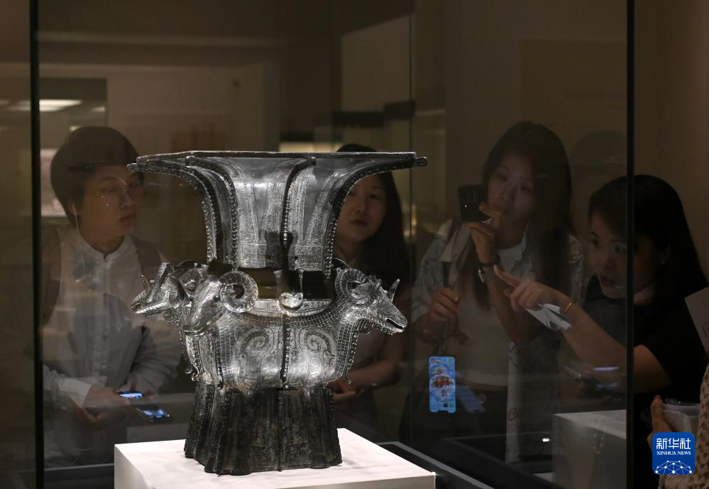 7月21日,人們在國博參觀仰韶文化鷹形陶鼎。