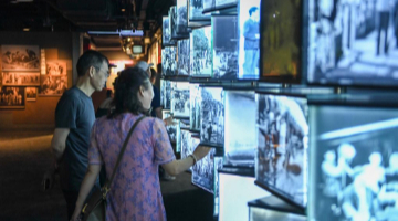8月7日,游客在長影舊址博物館觀看電影歌舞劇《白毛女》。