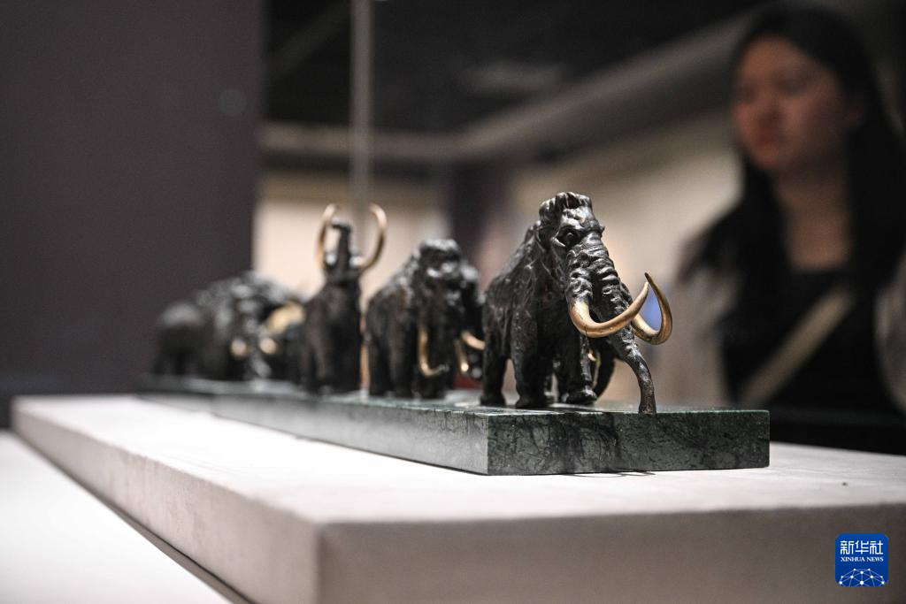 8月13日在海南省博物館拍攝的“俄羅斯當代藝術大師經典作品展”展出的雕塑《猛犸象群》。